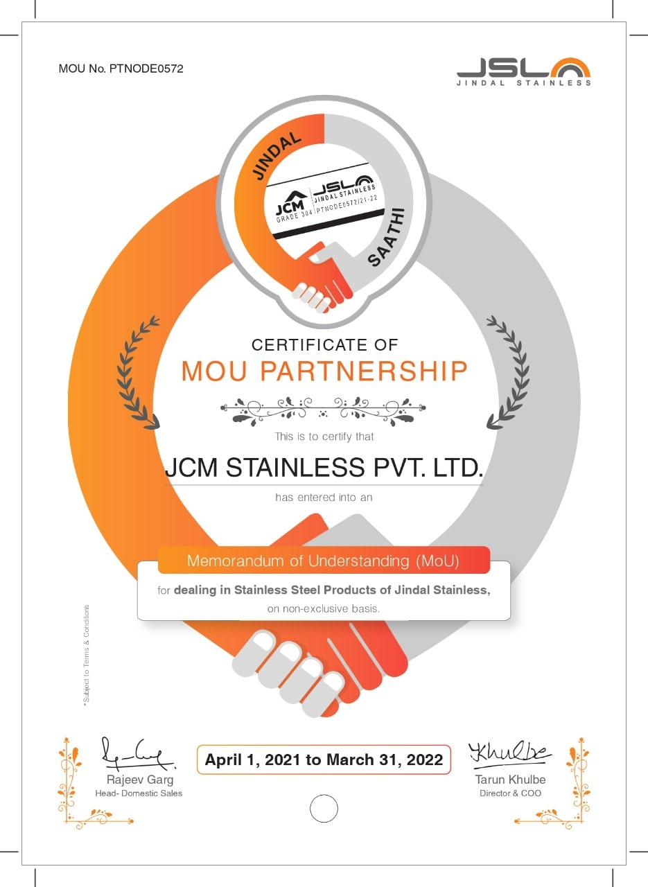 "JCM Stainless holds industry-leading certifications, ensuring our stainless steel products meet the highest quality standards. Trust us for durability, reliability, and excellence in every products."